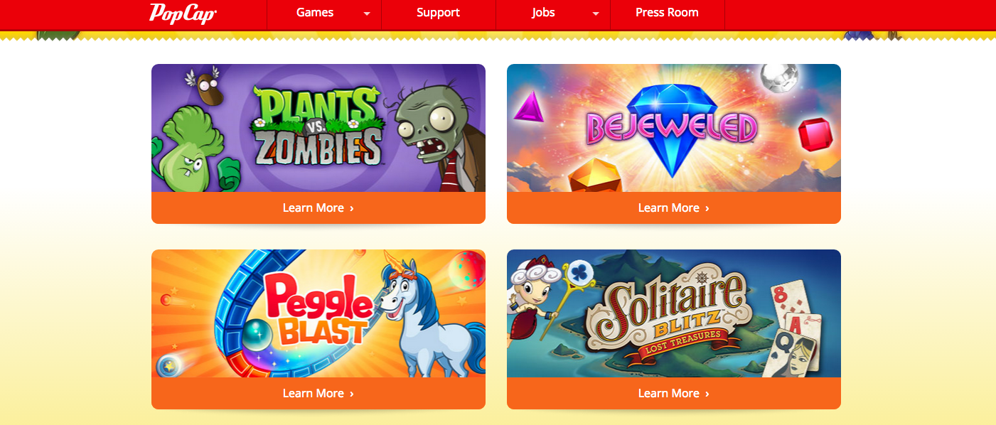 We’re the leading creators of easy-to-learn, irresistible games that everyone can enjoy — including award-winning hits like Bejeweled®, Zuma®, Peggle® and Plants vs. Zombies™.